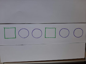 1. En esta serie el niño leerá y repetirá oralmente varias veces : cuadrado/círculo/círculo /cuadrado/círculo/círculo y así sucesivamente.